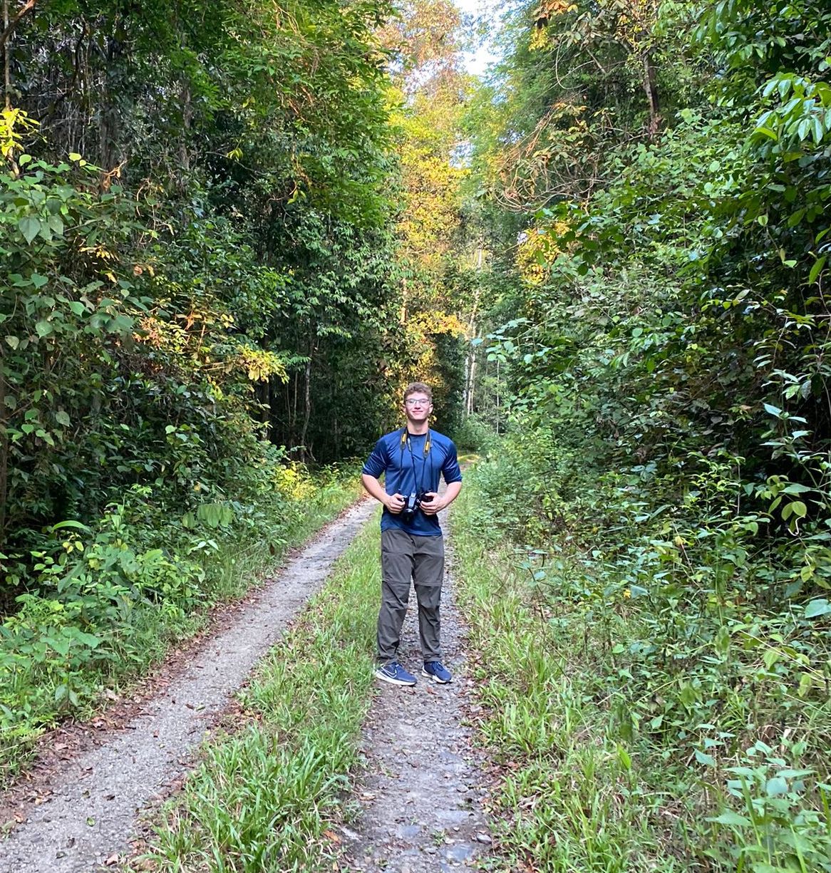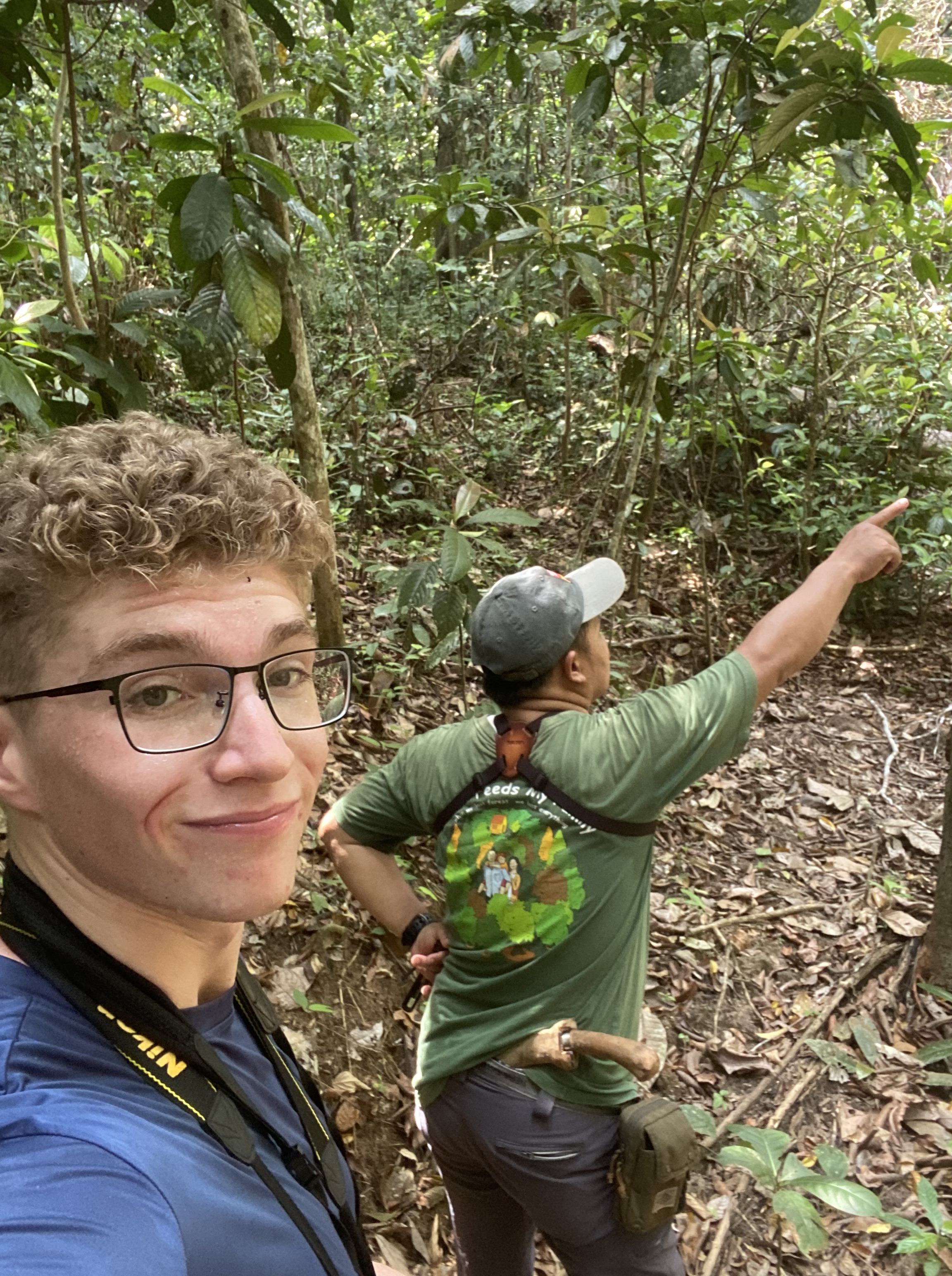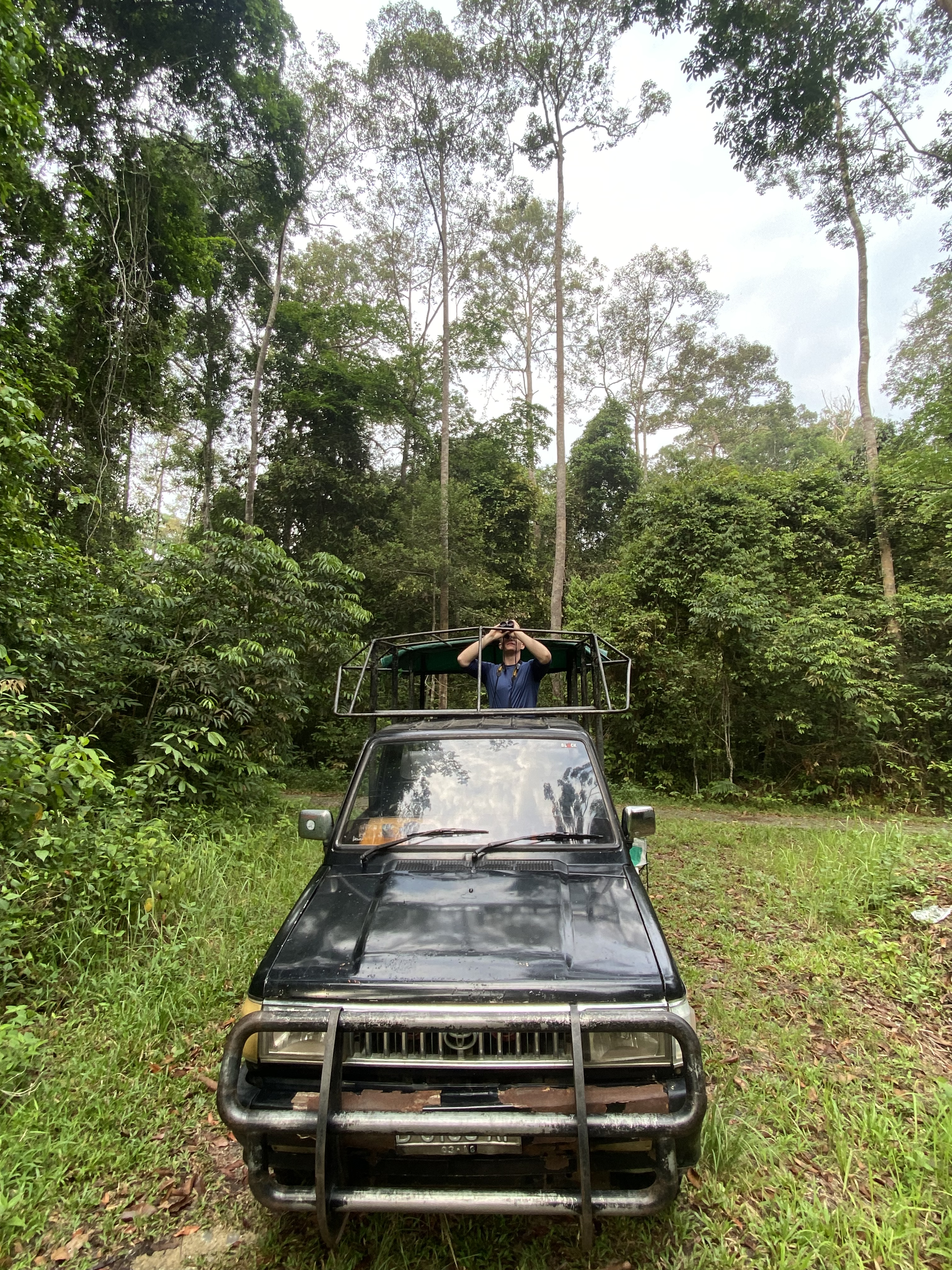 It was about 8pm on the evening of Day 4, about 3km from the Way Kanan Substation. Hari and I got out of the car for one last attempt at finding a Pen-tailed Treeshrew (a spectacular small mammal that unfortunately eluded me on this particular trip). We heard loud crashing noises about 50m into the forest right next to the car, which Hari correctly identified as a Sun Bear ripping apart a beehive. We tried to pinpoint the exact location of the noises for about ten minutes, when suddenly we heard the bear walking toward us! For our own safety, Hari had us get back into the car as the animal approached, and turned off all lights. The huffing and crashing noises of the bear walking through the forest kept getting louder until they were only a few meters from the car.