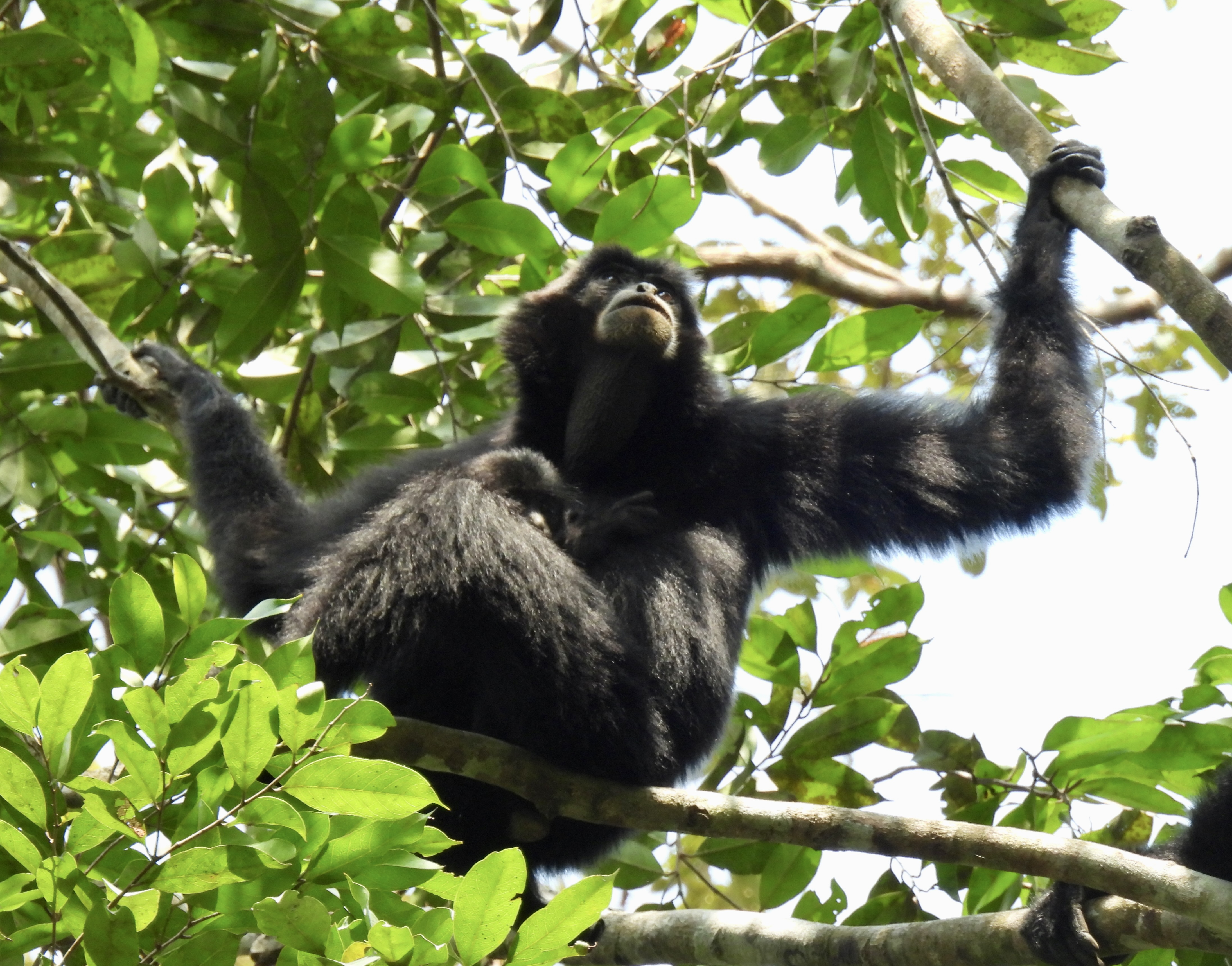 I had a very memorable and lengthy encounter with a family group just above the jeep track that broke out into a deafening chorus of ‘whoops’ and screeches on Day 2. The territorial songs of different Siamang families echoed through the forest during my three mornings in Way Kambas.
