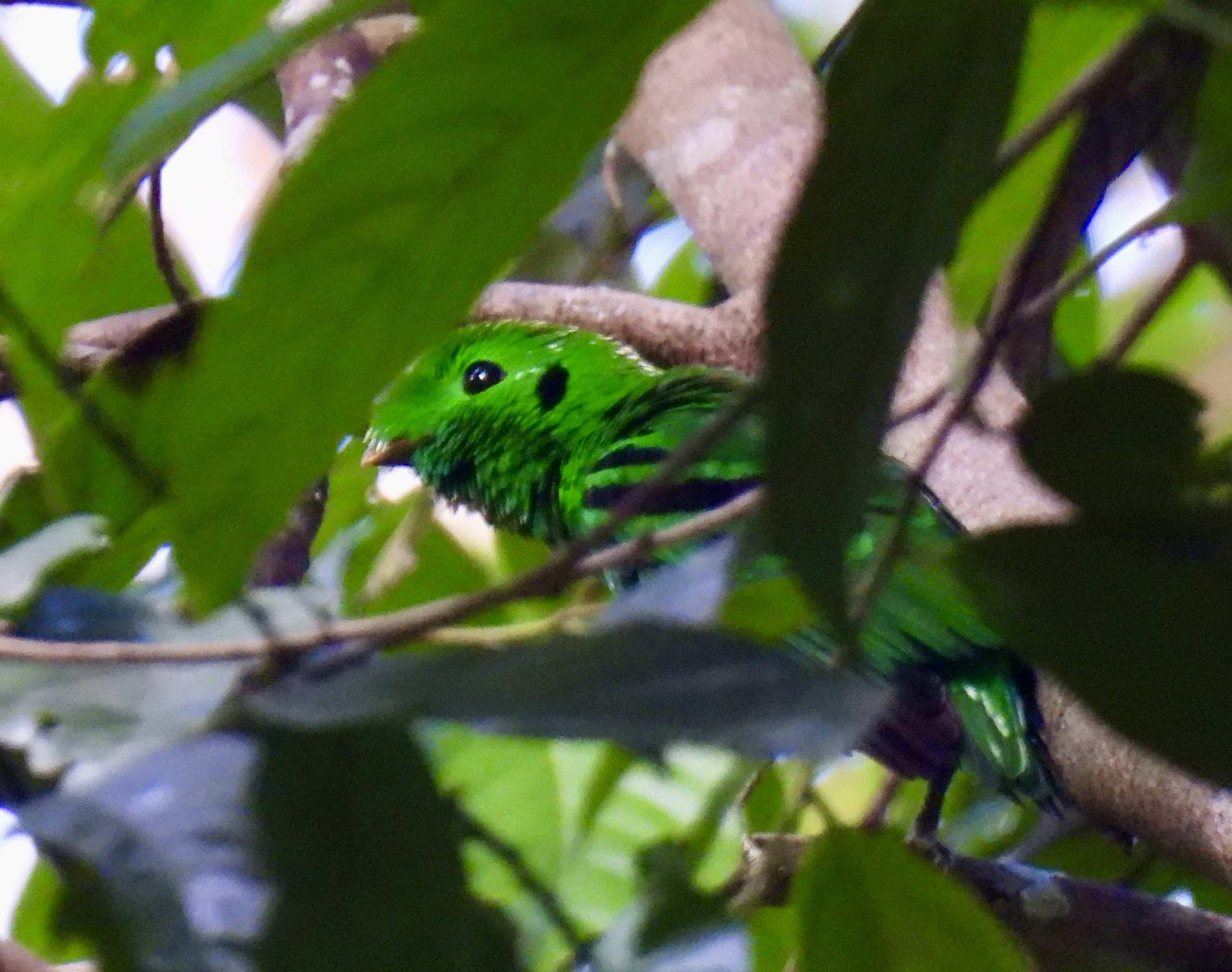 Banded Broadbill– Strikingly beautiful bird, and a target species of mine. Seen in the canopy of the rainforest along the Lower Jeep Track on the morning of Day 1. Spotted by Hari.