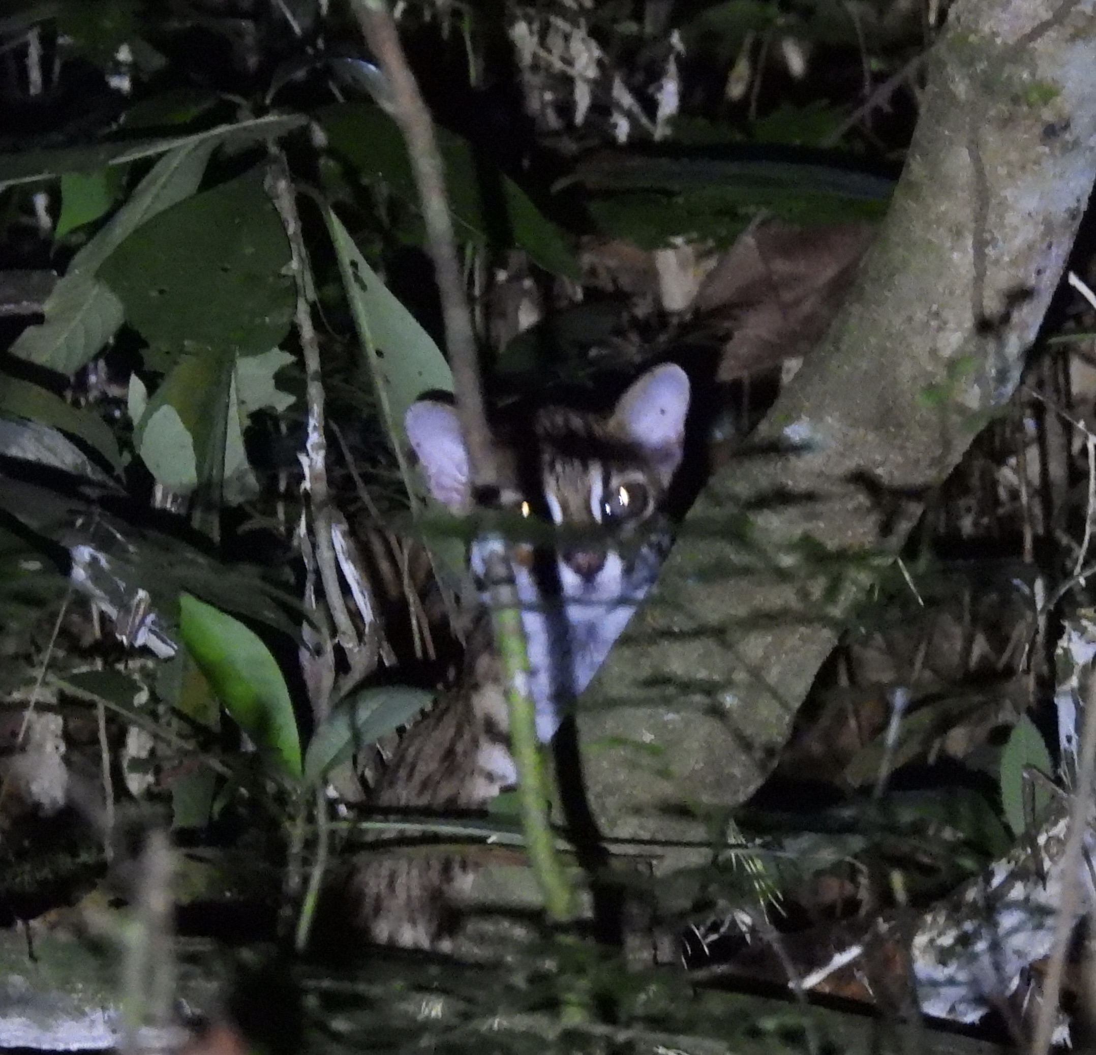 At this point, Hari told me to get my camera ready, and turned on his spotlight. A mere 5 meters away there it was! The black, furry back of a Sun Bear!! As soon as the spotlight was pointed at it, the bear briskly dashed deep into the forest. Still an amazing and very rare encounter with one of Southeast Asia’s most charismatic mammals!