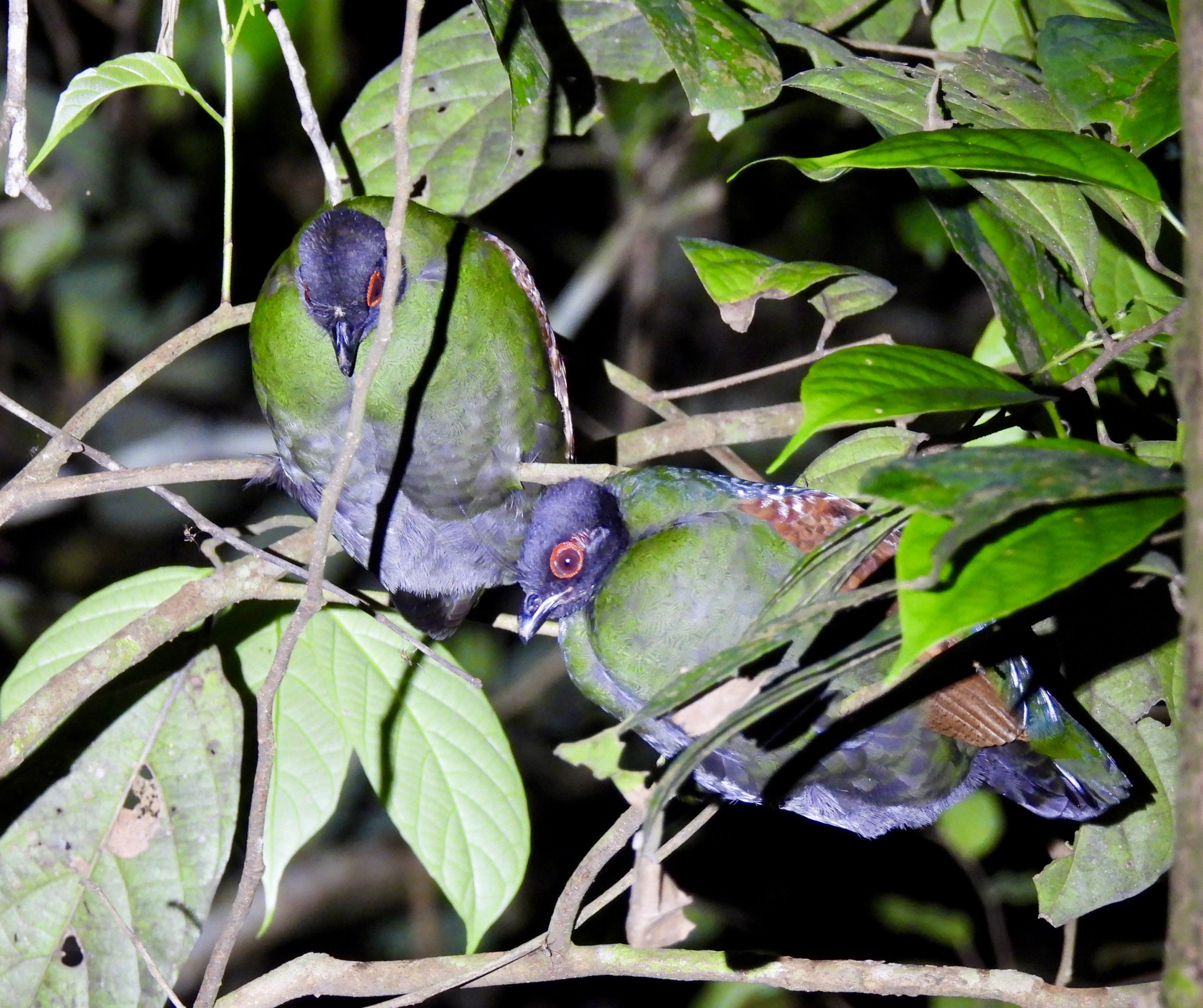 My favorite gamebird encounter of the trip was undoubtedly of three Crested Partridges on the evening of Day 2— threatened and stunning gamebirds that are rarely seen in Way Kambas. Hari and I happened randomly upon a roosting male and two females in some dense undergrowth while using Hari’s thermal imaging software to try and locate tarsiers and Pen-tailed Treeshrew.