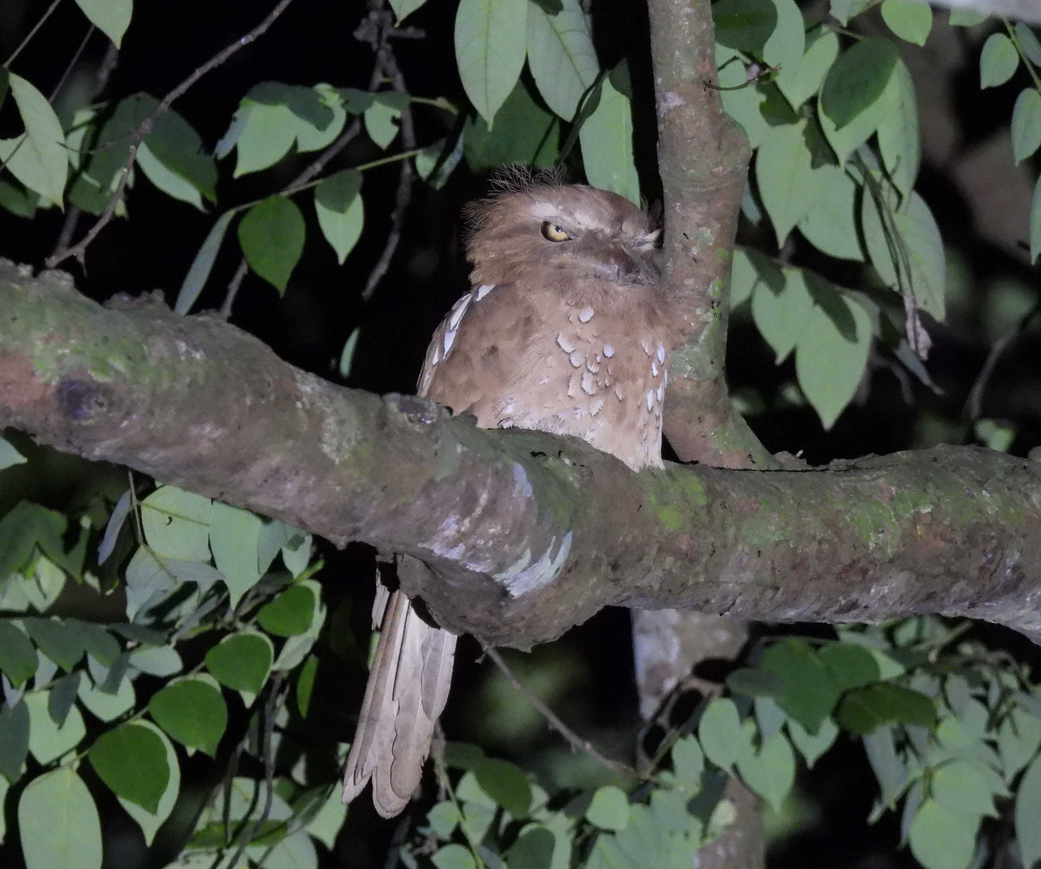 Way Kambas National Park is widely considered to have some of the best night-birding in Asia. With an outstanding diversity of nocturnal avians present, including owls, frogmouths & nightjars, this is no surprise. One of the primary targets for visiting birders (myself included) are the three frogmouth species found within the park. Frogmouths are enigmatic and unique birds in their own order, the Podargiformes, and are normally difficult to spot in the wild owing to their outstanding camouflage and nocturnal predatory habits. I was lucky enough to see all three Way Kambas frogmouths on my Sumatra trip, and I have interesting notes about my encounters with each species: