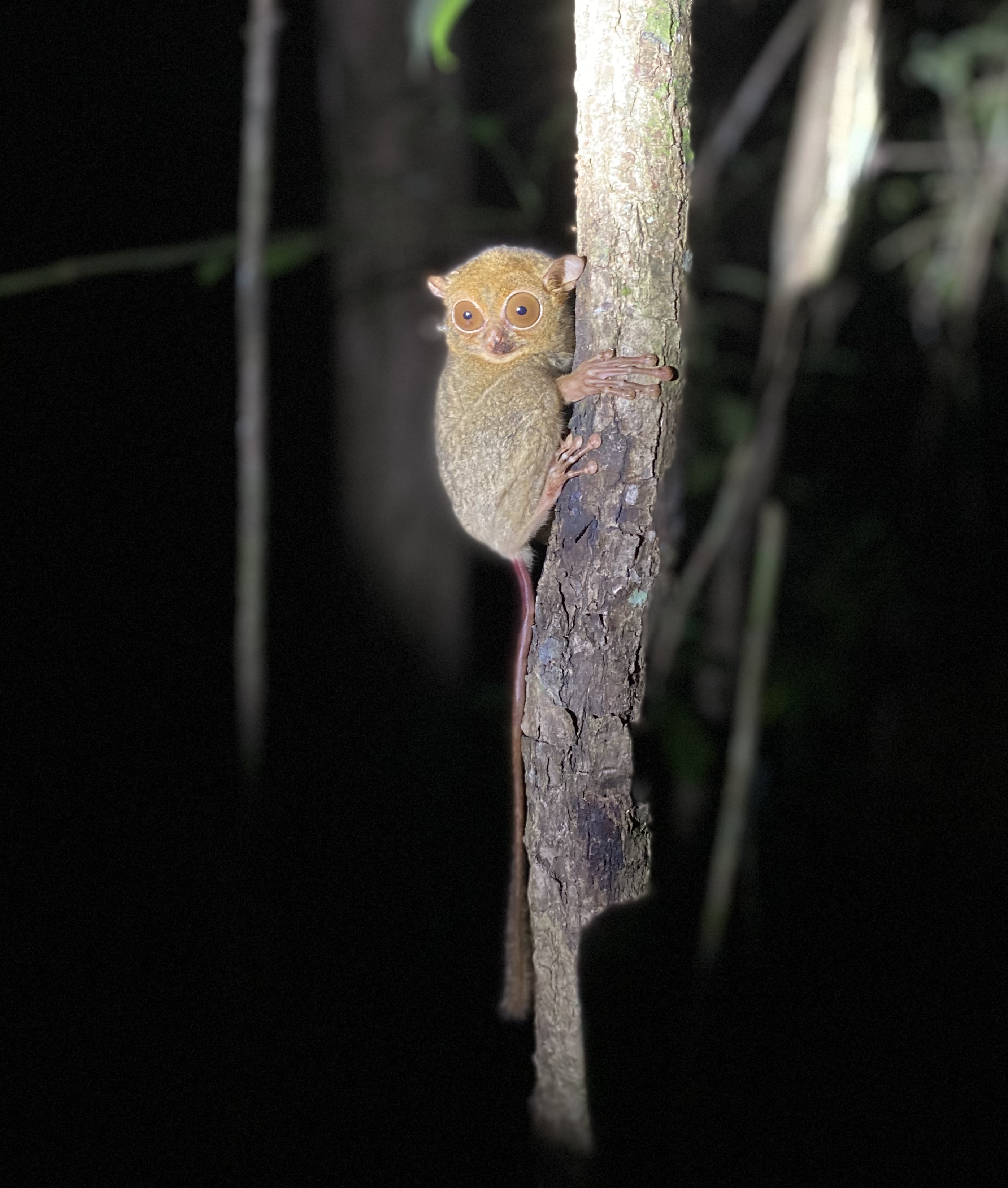 Hari and I enjoyed an extremely close-up encounter with an individual of this adorable primate clinging to a sapling in the dense undergrowth off the side of the jeep track on the evening of Day 2. What started off as a slow night of spotlighting ended with a huge stroke of luck. Hari and his incredible knack for finding mammals in the dense rainforest of Way Kambas really came in handy for this species! Western Tarsiers are the rarest of Way Kambas’ 8 primate species, and are seen very sporadically by Hari. In fact, one of the rangers with us that night, who’s worked at Way Kambas for 30 years, had never seen one prior.