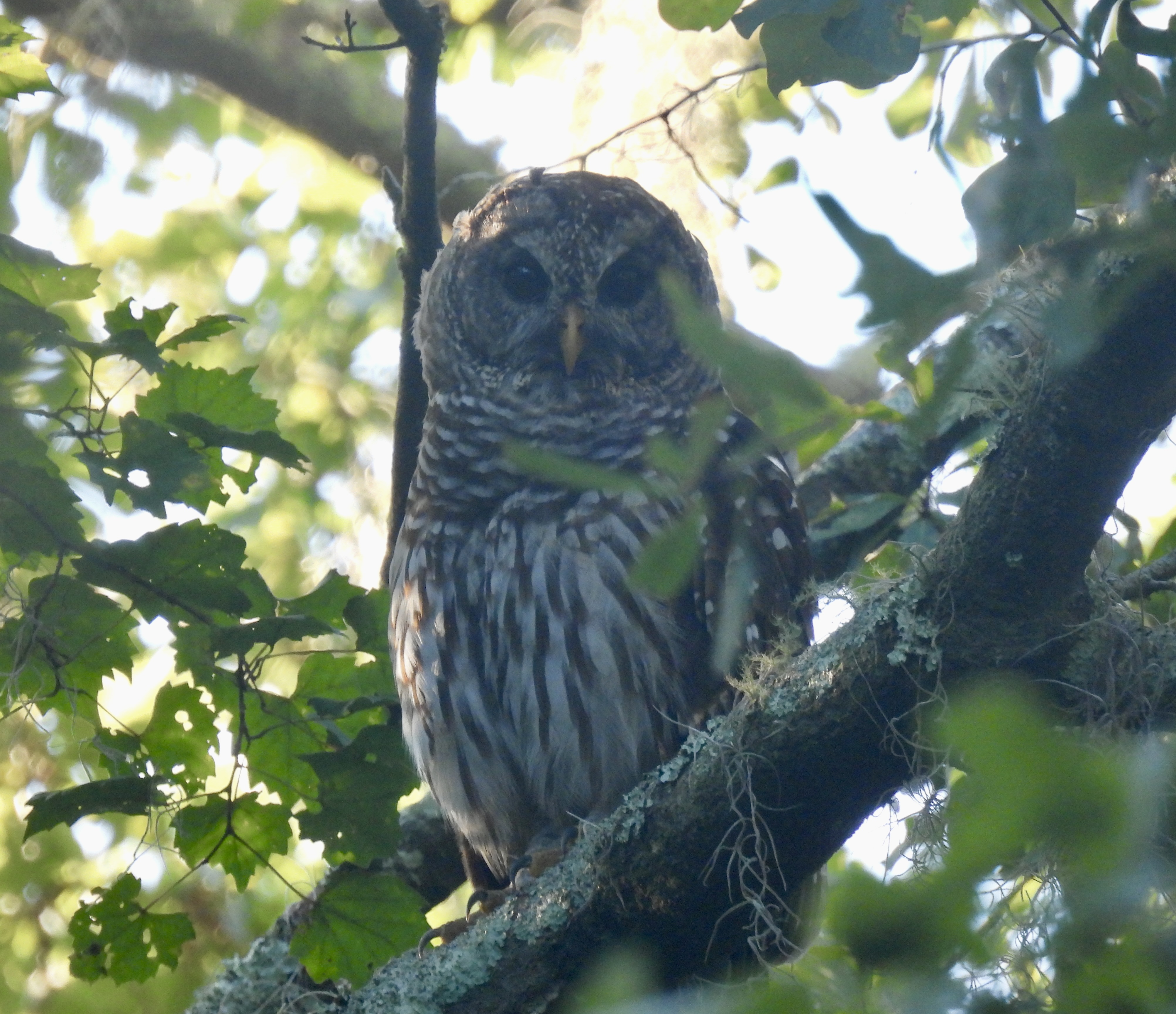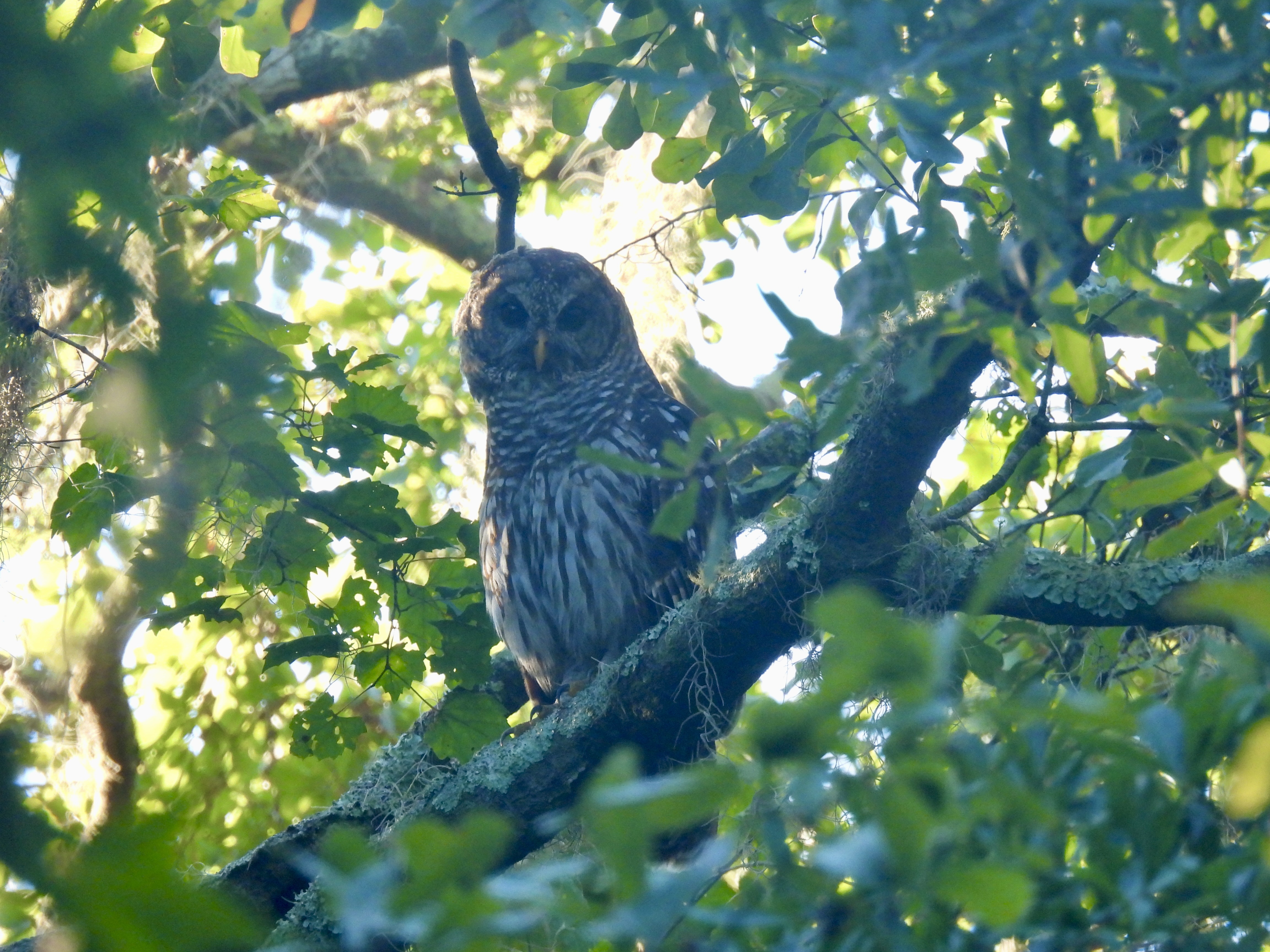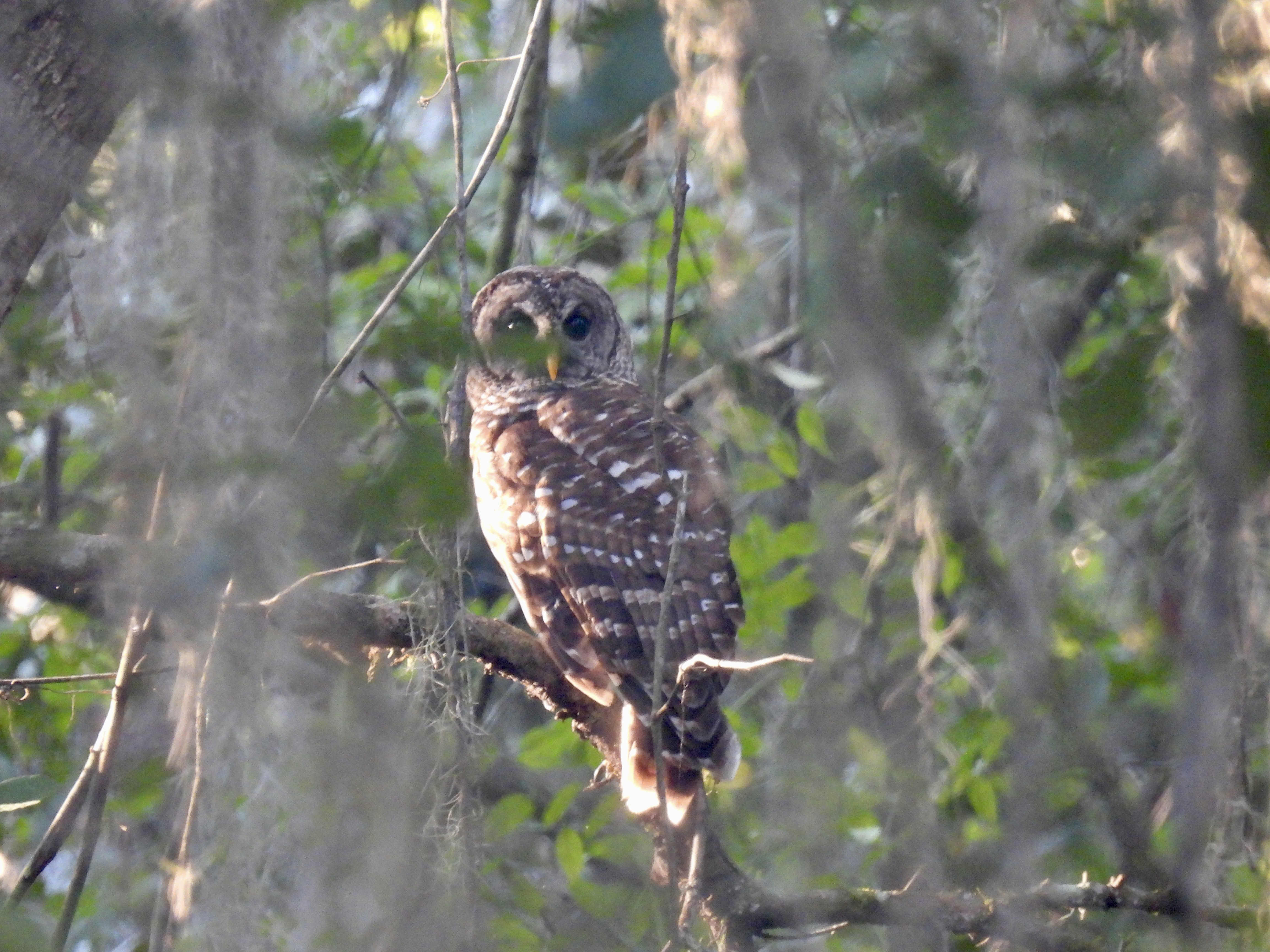 Within five minutes of starting our hike at 7:45 AM, I spotted two Barred Owls flying low through the canopy. We tailed them into the forest, and got a good view of one owl staring at us from a branch in the mid-storey. A great lifer bird and a species that has eluded me for years, despite being common in Florida.