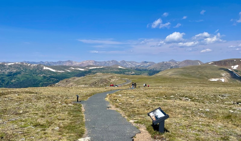 At around 10:15 AM, we arrived at the bustling Alpine Visitor Center. The alpine tundra was sunnier and much warmer than the day prior, and the views were just as arresting. A group of fearless Common Ravens greeted us as we exited the car.