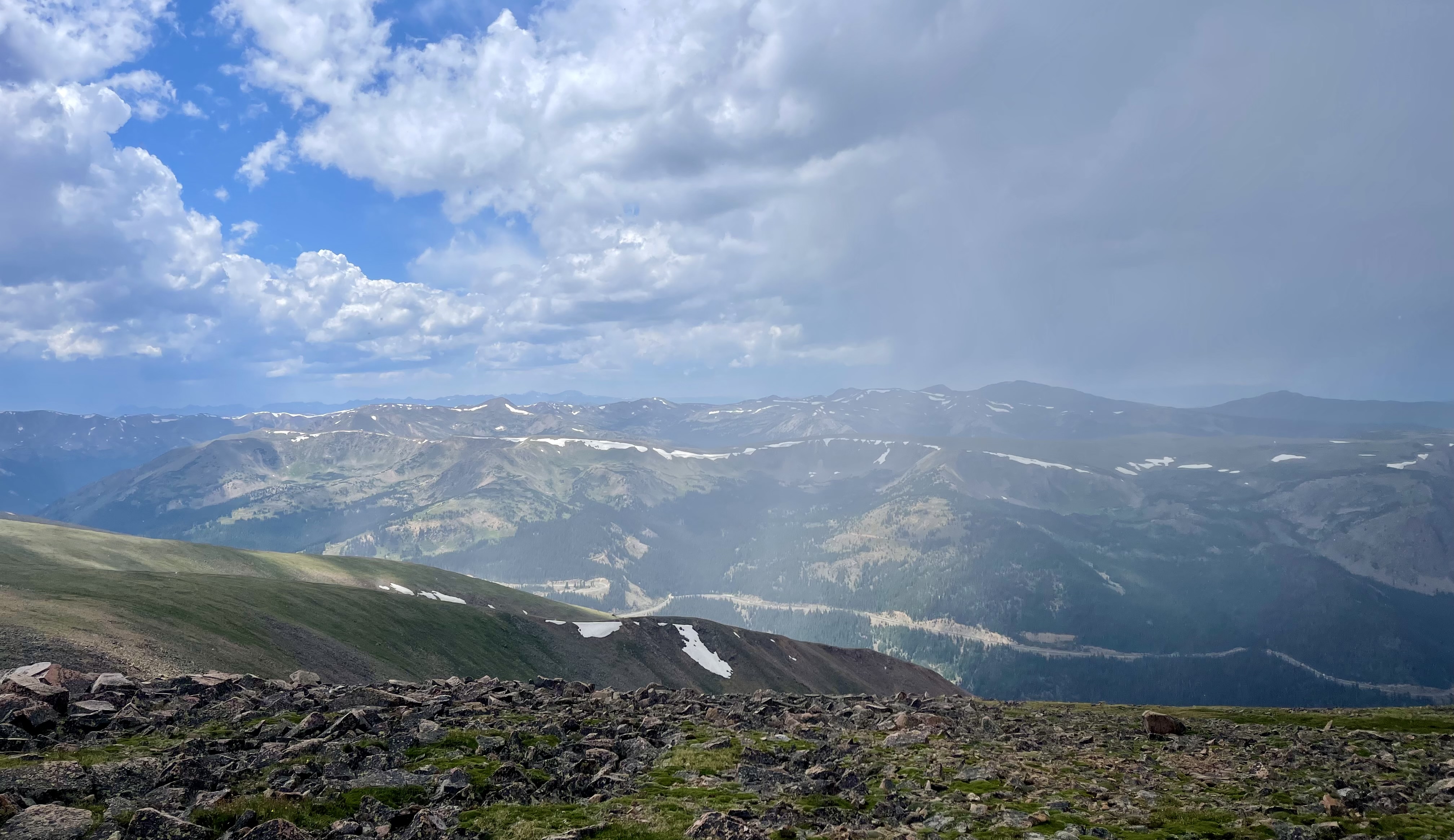 As I stood atop the mountain, one of Colorado’s impromptu thunderstorms engulfed me. Standing on the exposed, high-elevation ridgeline, I was basically asking to become the headline of a news article stating ‘Lighting Strike Victim’. Once I realized this, I essentially scurried down the trail like a marmot.