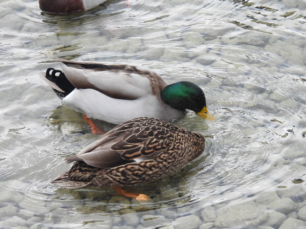 Mallards in the lake (left) and Alpine Ibex statue (right)