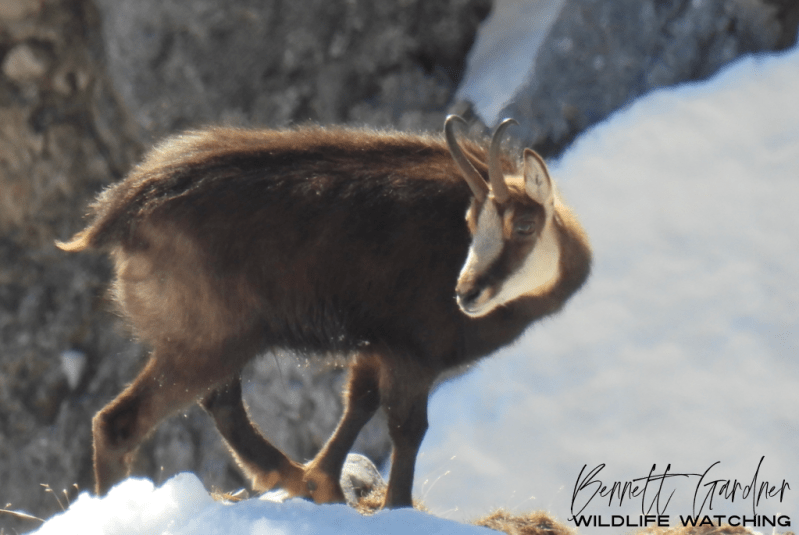 Wildlife-watching in the snow was a completely new experience for me. I’m far more accustomed to searching for animals in steamy jungles, and the alpine environment was a welcome change. As my dad and I hiked down from the summit, I managed to spot two more chamois along the mountainside.