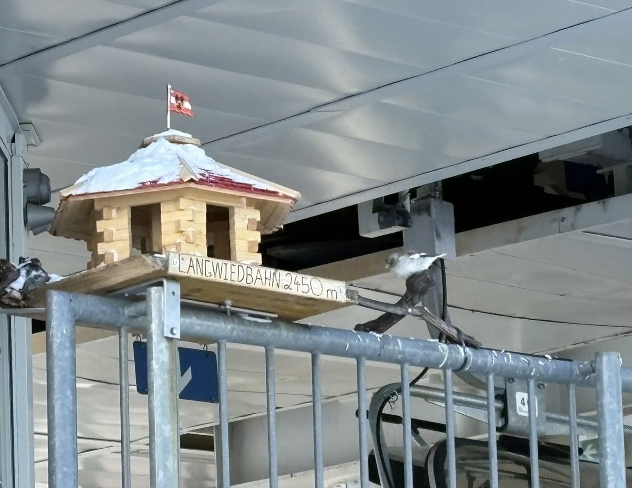 While skiing on Kitzsteinhorn on December 31st, I spotted a flock of White-winged Snowfinches—alpine specialist birds—at the Alpincenter, 2,450 meters (8,038 ft) above sea level. Several snowfinches were gathered around a collection of birdhouses next to a ski lift, where they presumably take shelter from the harsh alpine weather.