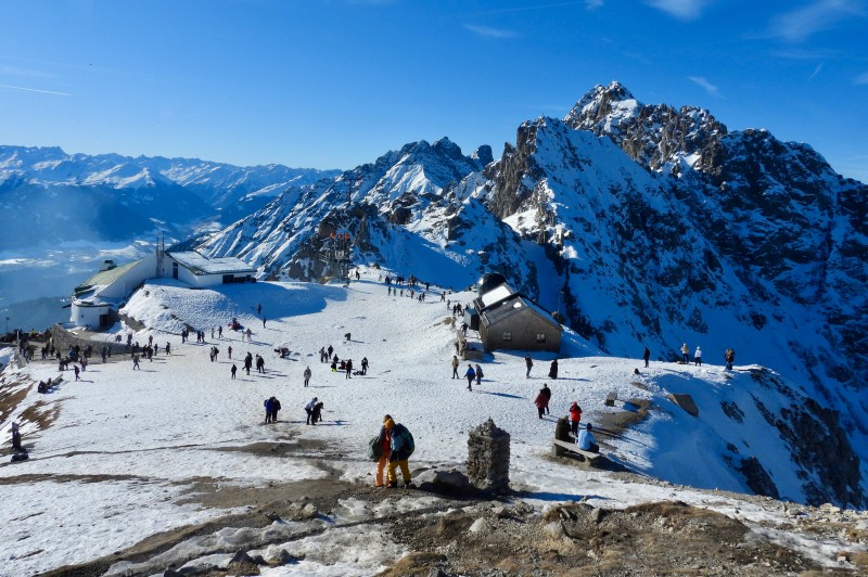 We arrived in the small city of Innsbruck after a roughly 4-hour train ride from Vienna. Innsbruck is nestled in a valley deep within the spectacular Alps of western Austria, and is popular among tourists for its easy access to nearby ski resorts and mountain peaks. We stayed at Hotel Leipziger Hof in the city center for two nights and spent most of December 27th exploring Hafelekarspitze, a 2,334-meter (7,657 ft) peak accessible by cable car.