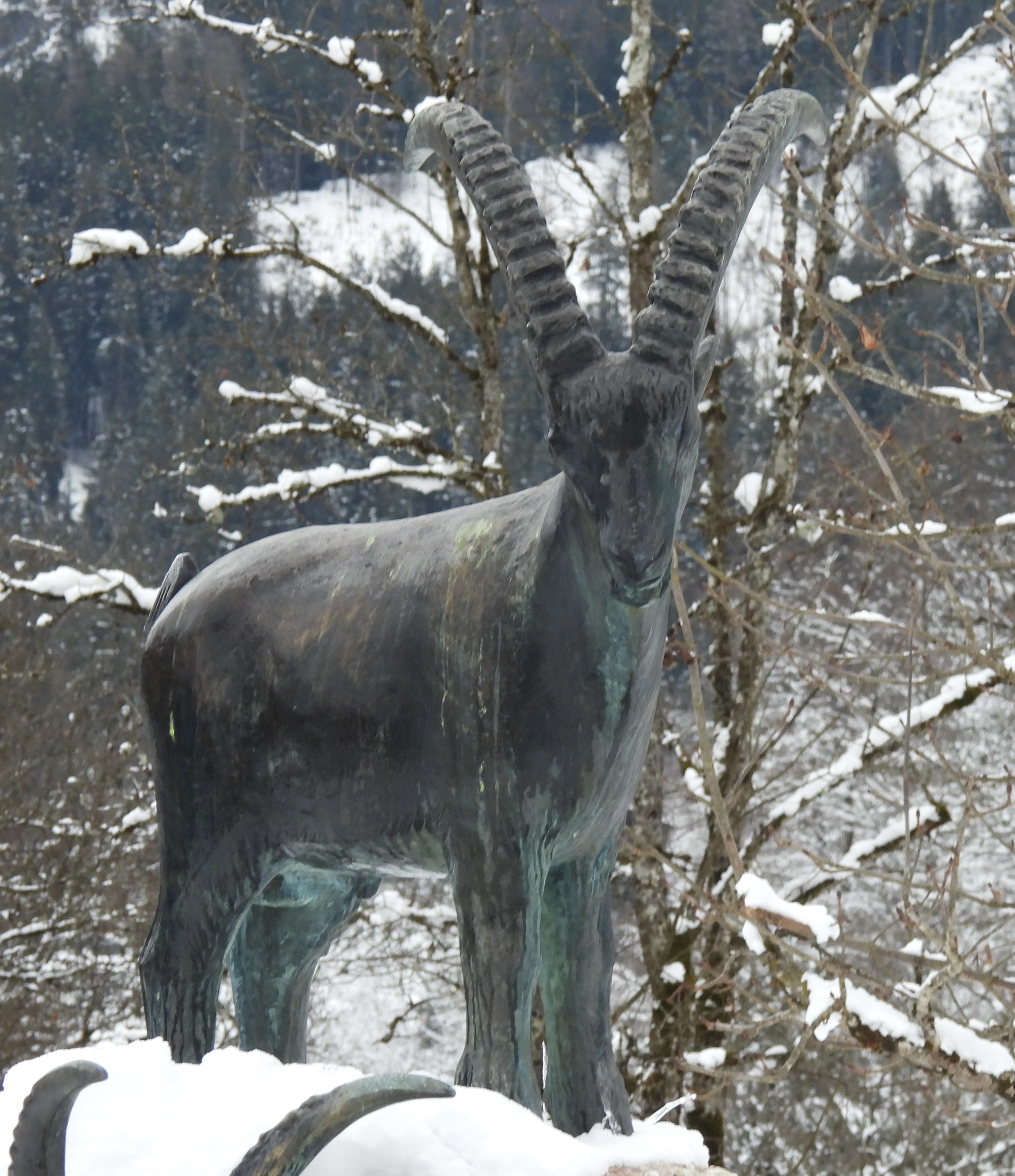 There wasn’t much of any wildlife around apart from some Mallards in the lake and Eurasian Jackdaws around the town. A bronze statue of two Alpine Ibex near the parking lot gave me false hope for an actual wildlife sighting.